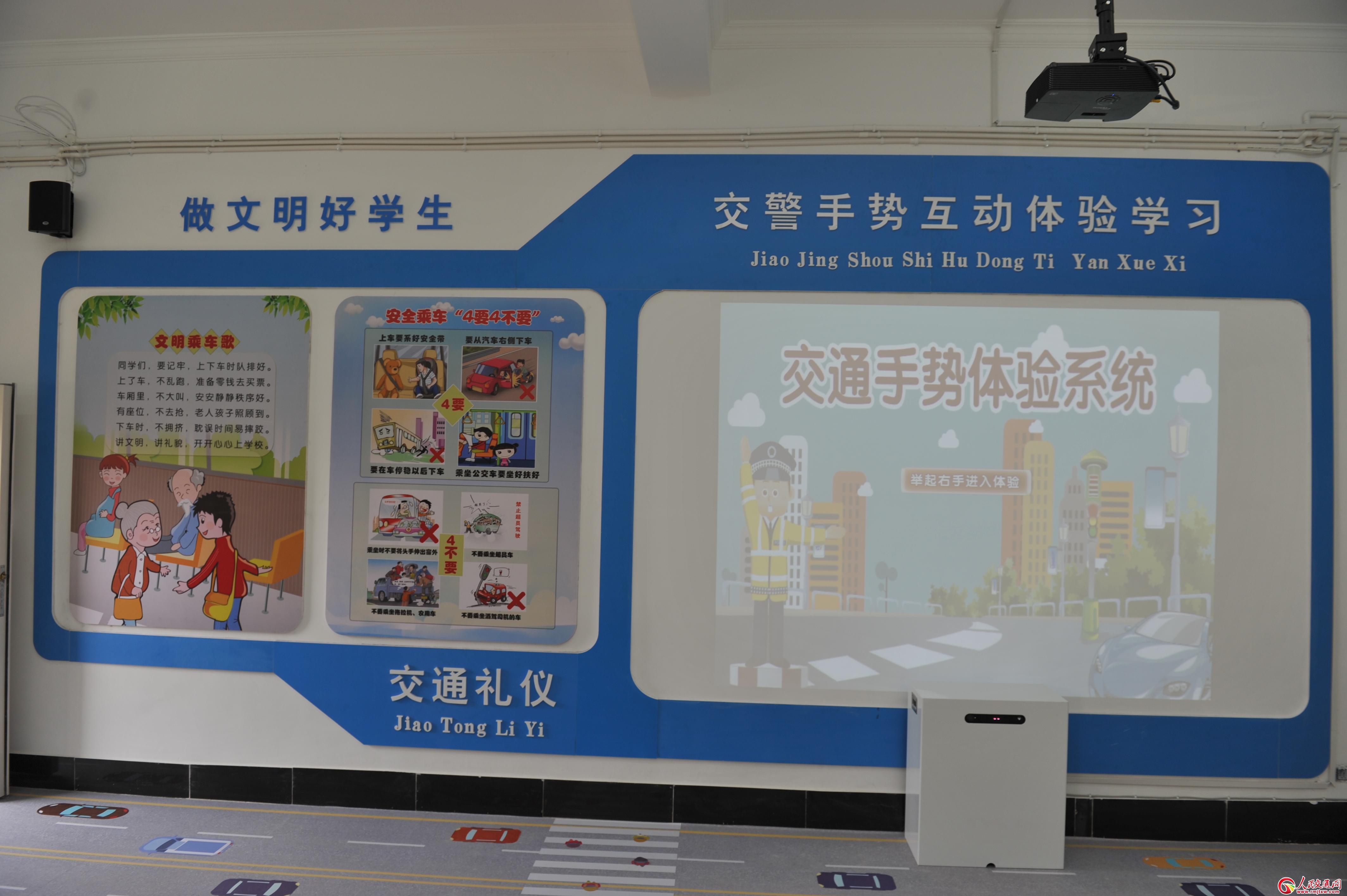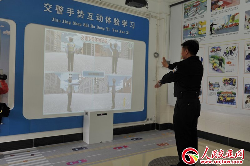 宣傳教育區(qū)通過(guò)視頻播放、PPT課件講解,讓廣大學(xué)生深入了解交通事故的和交通違法的嚴(yán)重危害。安全文明出行、交通標(biāo)志、交通禮儀、中國(guó)汽車發(fā)展史等綜合展示,進(jìn)一步拓展了學(xué)生對(duì)道路交通的知識(shí)面,增添了宣傳教育的趣味性;(dòng)體驗(yàn)區(qū)通過(guò)安裝智能體感設(shè)備,通過(guò)交通指揮手勢(shì)信號(hào)的學(xué)習(xí)和體驗(yàn),讓學(xué)生知道如何安全橫過(guò)街道,認(rèn)識(shí)到在參與道路交通過(guò)程中,遵守交通信號(hào)通行的重要性。