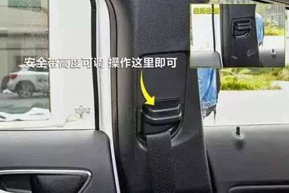 安全帶也是可以調(diào)高低的,調(diào)節(jié)的裝置就在兩側(cè)的B柱上。也有向外拔出解除鎖止的,乘坐著可以根據(jù)自己的身高調(diào)節(jié)。