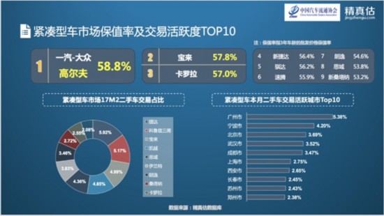 4月5日,中國汽車流通協(xié)會與第三方汽車數(shù)據(jù)服務(wù)平臺精真估聯(lián)合發(fā)布了《2017年2月份中國二手車保值率報告》。報告分為小型車、緊湊型車、中型車、中大型車、緊湊型SUV、中型SUV、中大型SUV七個級別,精真估數(shù)據(jù)中心通過對2月份全國二手車交易價格、庫存變化、新車價格走勢等大數(shù)據(jù)進行分析,對各級別車型保值率、二手車流通量、各城市交易活躍度進行對比。