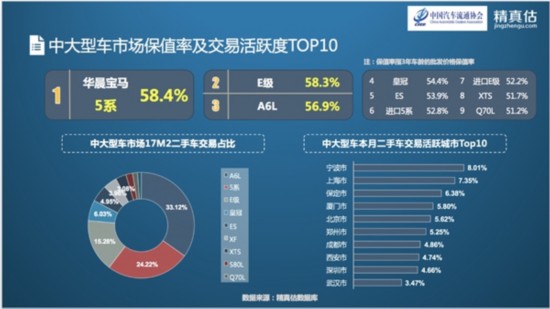 中型車市場中,雅閣交易活躍度繼續(xù)排名第一,而其保值率也排在了第三位;邁騰保值率排在該級別第一的位置;寶馬3系交易活躍度排名第九位,保值率在該級別車中位列第4。
