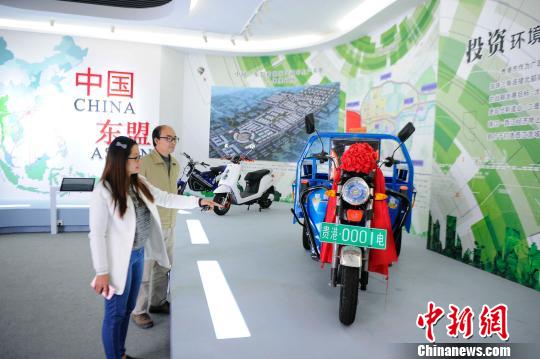 展示在展覽廳里的貴港市第一輛電動車!∈Y雪林 攝