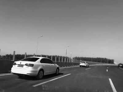 早晨8點(diǎn)40分左右,從通州通朝大街駛上廣渠路二期高速路,剛上坡不久,在道路的南側(cè),有一塊百余米長(zhǎng)的三角形地帶,路邊碼放著十余個(gè)塑料隔離墩,旁邊?恐鴰纵v私家車,每輛車?yán)锩娑加腥,仔?xì)看車牌,都是外地牌。記者降低車速靠近這幾輛車發(fā)現(xiàn),其中有一輛車的司機(jī)正低頭看手機(jī),還有一名乘客把腳翹到了儀表盤上方,躺在車?yán)镄菹。記者駛離后,從后視鏡看到,又有兩輛車從主路拐進(jìn)了三角帶停車。