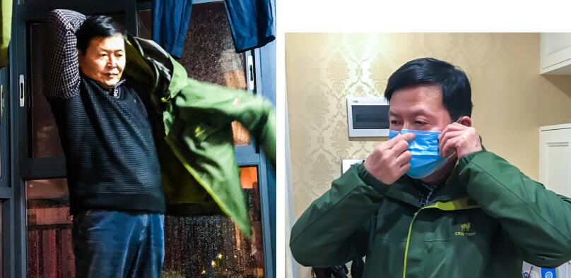 2月1日22點50分,提前1小時在家開始換衣準備去值零點班。(我女兒拍攝)