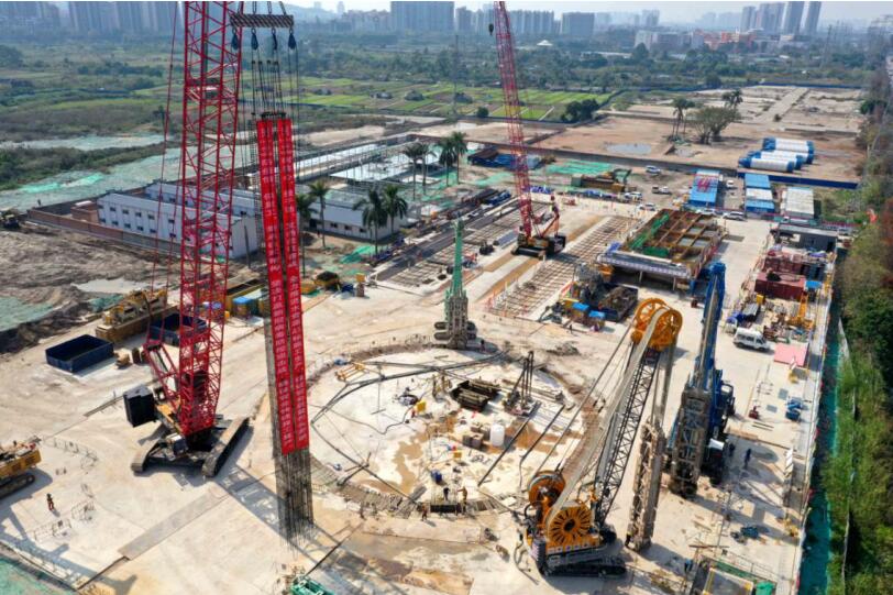 距離不遠(yuǎn)的國務(wù)院部署的172項(xiàng)節(jié)水供水重大水利工程之一——珠江三角洲水資源配置工程A5標(biāo)豎井和廣州地鐵10號(hào)線東湖站施工現(xiàn)場(chǎng),“軟硬通吃”的挖槽“神器”——雙輪銑正在挖槽,不僅噪音低、施工效率高,而且有效的保障了地連墻成槽的安全和質(zhì)量,攻克了地質(zhì)情況復(fù)雜、周邊建筑物多、交通繁忙等施工難題,為后續(xù)基坑、土方開挖、盾構(gòu)施工奠定了基礎(chǔ)。為抓好防疫,中鐵十八局集團(tuán)五公司和市政公司項(xiàng)目部對(duì)所有進(jìn)場(chǎng)人員進(jìn)行了抽血抗體檢測(cè)和核酸檢測(cè),做到雙保險(xiǎn),確保了全員健康。目前這2個(gè)廣州重點(diǎn)建設(shè)項(xiàng)目已全面復(fù)工復(fù)產(chǎn),雙輪銑、吊車、沖樁機(jī)等大型設(shè)備都已進(jìn)入大干模式。