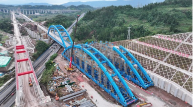 西渝高鐵跨營達高速公路大橋完成左聯(lián)系桿拱合龍,為大橋順利建成打下基礎(chǔ)(圖/張靖)
