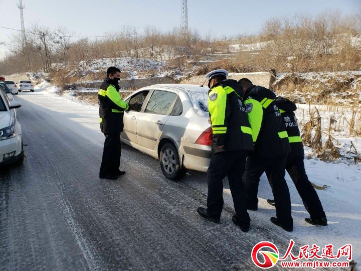 隨后,當(dāng)他們繼續(xù)沿井石快速路巡邏至帳方嶺路段時,又發(fā)現(xiàn)一輛灰色小型轎車斜停在馬路中央,駕駛員正在更換輪胎,存在安全隱患,民警馬上下車協(xié)助該駕駛員快速更換了輪胎,換完輪胎后,又遇該車因雪天路滑無法起步,民警又幫忙推車,并囑咐駕駛員雪天路滑,謹(jǐn)慎慢行,駕駛員連聲說:“謝謝”。