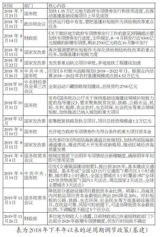 對(duì)于第一個(gè)問(wèn)題,2019年6月起,國(guó)務(wù)院審議通過(guò)允許地方政府專(zhuān)項(xiàng)債券作為符合條件的重大項(xiàng)目資本金后,市場(chǎng)產(chǎn)生了較為樂(lè)觀(guān)的預(yù)期,普遍認(rèn)為基建投資增速將回升,在6%―10%。實(shí)際情況是,2019下半年,基建項(xiàng)目投資增速并未明顯轉(zhuǎn)好,這再次驗(yàn)證了一個(gè)問(wèn)題,即當(dāng)前基建資金面的緊張并非由資本金比例門(mén)檻決定的。在這種情況下,無(wú)論是專(zhuān)項(xiàng)債可充當(dāng)資本金,還是2019年11月3日國(guó)常會(huì)下調(diào)公路建設(shè)資本金比例,基建定向加杠桿更多的只是放開(kāi)基建融資的“后門(mén)”,給予融資一定的結(jié)構(gòu)性支持,提升可撬動(dòng)資金總量的上限,而資金通過(guò)“前門(mén)”涌入基建項(xiàng)目,在全市場(chǎng)信用收縮的背景下,依舊較難。