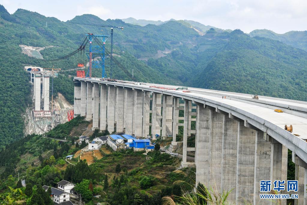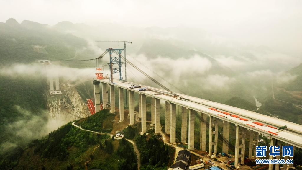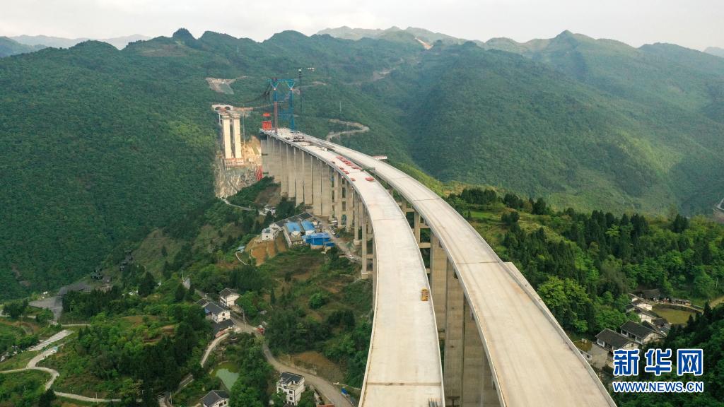 這是4月22日拍攝的貴州省仁遵高速公路大發(fā)渠特大橋施工現(xiàn)場(無人機照片)。