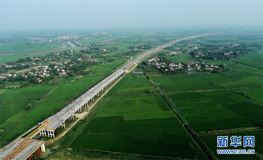 8月28日,航拍徽州大道南延工程廬江縣石頭鎮(zhèn)境內(nèi)施工現(xiàn)場。