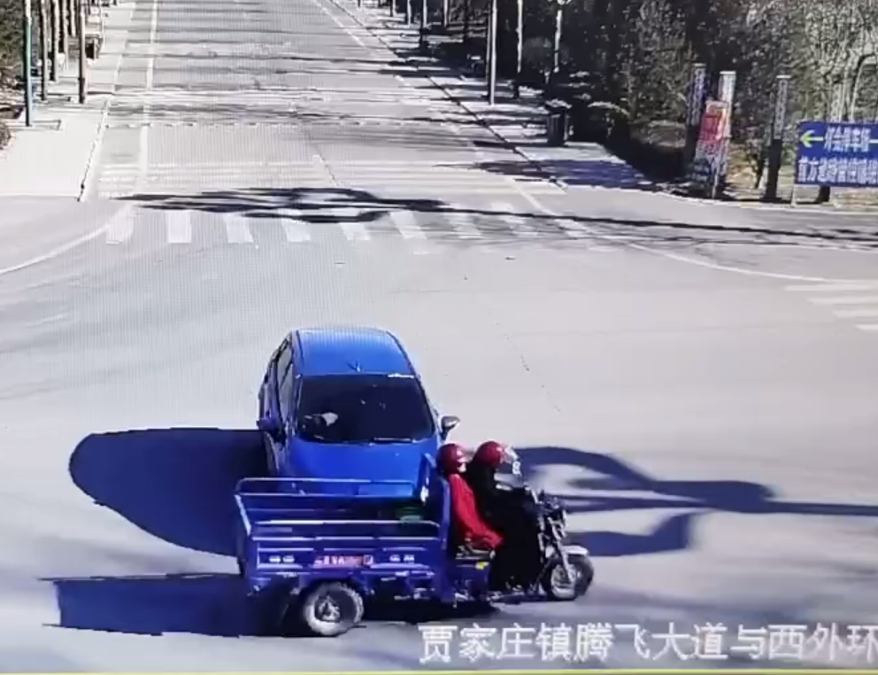 案例三:2022年2月21日10時(shí)30分許,孔某駕駛晉A9LP**小型轎車沿汾陽市賈家莊鎮(zhèn)騰飛大道由北向南行駛至西外環(huán)十字路口處時(shí),與由西向東武某(車載蘆某)駕駛的三輪摩托車發(fā)生碰撞,造成武某受傷及雙方車輛損壞的交通事故。