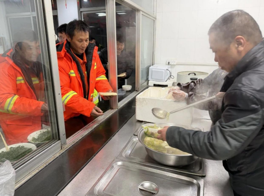 在保障前線作業(yè)的同時,后勤支撐也暖心到位。南京市公路中心繞城工區(qū)為掃雪除冰歸來的一線人員送上熱乎羊肉湯,用暖胃熱餐助力大家持續(xù)作戰(zhàn);寧馬收費站在安全島、階梯、衛(wèi)生間門口等位置鋪設(shè)麻布,收費車道同步開展人工撒布融雪劑作業(yè);各汽車客運站凌晨便組織員工開展掃雪除冰工作,為旅客出行掃清障礙。