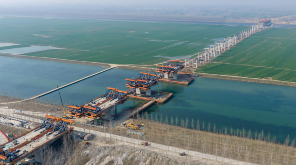 作為項(xiàng)目控制性工程,新沂河特大橋建設(shè)迎來關(guān)鍵突破。該橋全長(zhǎng)約2284米,目前懸澆梁施工已完成49%,數(shù)十臺(tái)大型機(jī)械與施工隊(duì)伍協(xié)同作戰(zhàn),計(jì)劃于今年6月實(shí)現(xiàn)合龍,為全線貫通奠定重要基礎(chǔ)。
