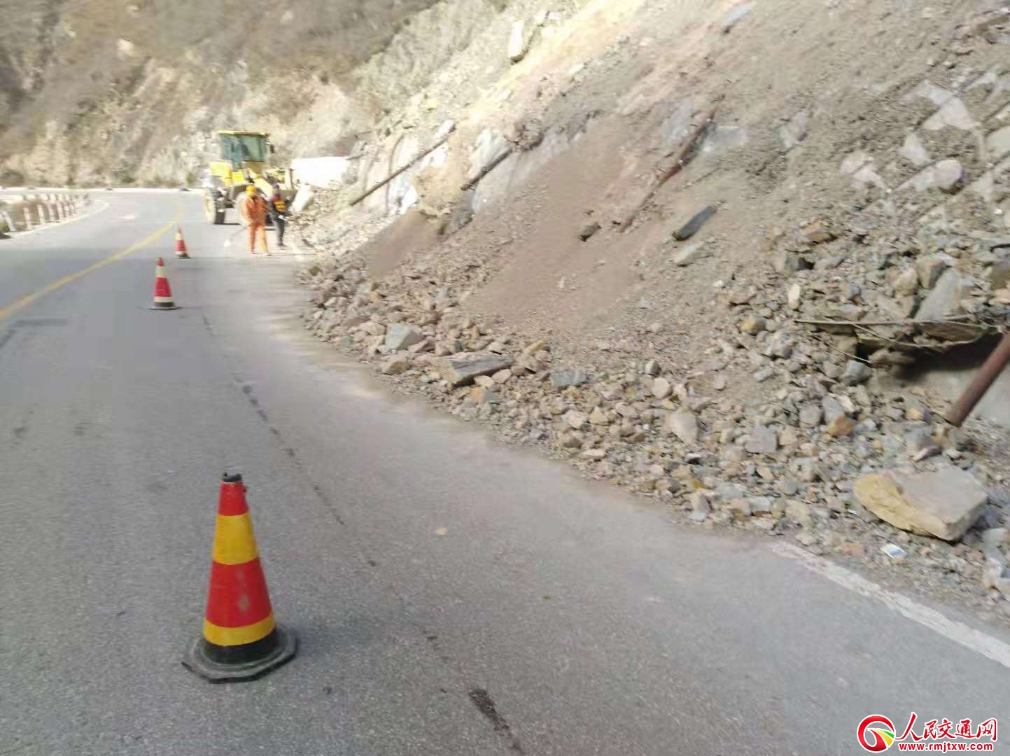 人民交通網(wǎng)訊(通訊員 劉志偉)11月27日上午,S208線洛禮路K55+920處發(fā)生山體塌方落石損壞攔石網(wǎng),造成邊溝填埋,近半幅路面受阻,存在安全隱患。武山公路管理段洛門(mén)養(yǎng)管站及時(shí)組織職工、機(jī)械對(duì)落石路面進(jìn)行緊急安全處置,布設(shè)安全警示標(biāo)識(shí)標(biāo)牌,清理落石。經(jīng)過(guò)近一個(gè)小時(shí)的不懈努力,路面落石全部清理完畢,消除了安全隱患,保障了該路段的暢通。