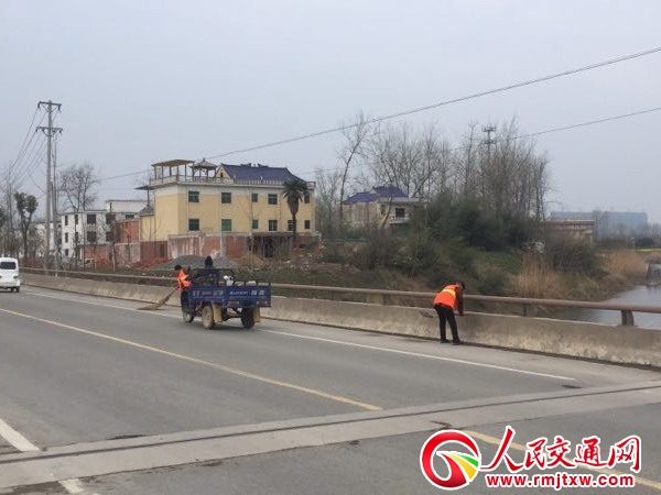 人民交通網(wǎng)訊(通訊員 陳德志)為及時(shí)清除橋面灰土等雜物,防止橋涵泄水管堵塞,近日,潁上公路分局針對(duì)管養(yǎng)橋涵實(shí)際,配合并督促保潔養(yǎng)護(hù)中標(biāo)單位有重點(diǎn)地對(duì)轄區(qū)路段橋面進(jìn)行保潔治理,有效防止大氣污染,確保橋涵安全暢通。