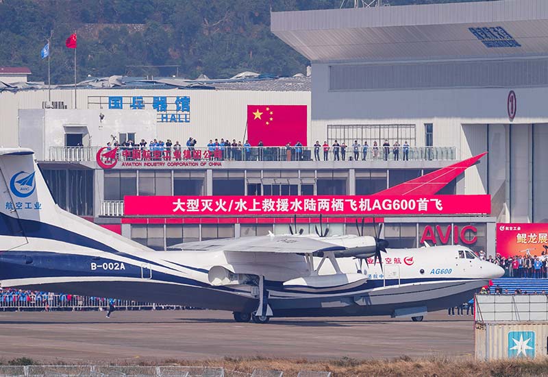 12月24日,“鯤龍”AG600順利降落,滑停到首飛儀式現(xiàn)場。
