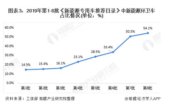 根據(jù)2019年工信部發(fā)布的1-8批《新能源專用車推薦目錄》,新能源環(huán)衛(wèi)車占比逐步提高,由第1批的14.5%提高至第8批的54.1%。新能源環(huán)衛(wèi)車的推廣使用將直接帶動(dòng)其銷量的增長。