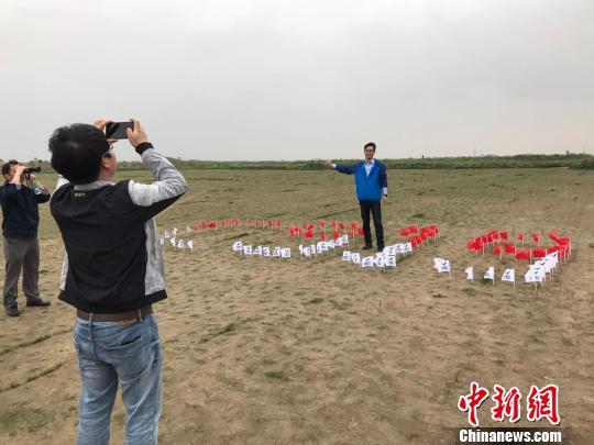 外場(chǎng)觀(guān)眾在地上擺放的c919圖案的旗幟前合影!⊥踝訚 攝