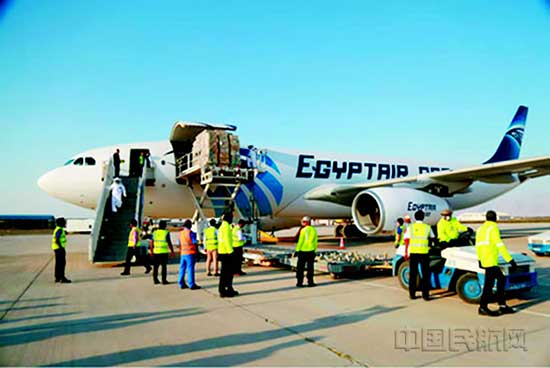 埃及航空貨運(yùn)部飛機(jī)正在裝貨