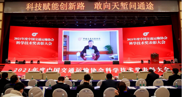 大會(huì)頒獎(jiǎng)儀式在激揚(yáng)奮進(jìn)的音樂聲中隆重舉行,與會(huì)領(lǐng)導(dǎo)嘉賓為獲得“2021年度中國(guó)交通運(yùn)輸協(xié)會(huì)科學(xué)技術(shù)獎(jiǎng)”的部分獲獎(jiǎng)代表頒發(fā)獎(jiǎng)狀和獎(jiǎng)杯。