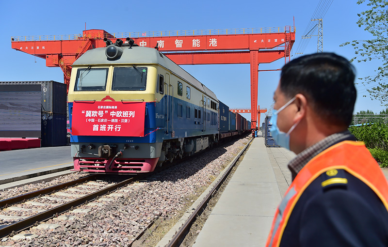4月17日,在石家莊國際陸港,開往德國漢堡的中歐班列整裝待發(fā)。