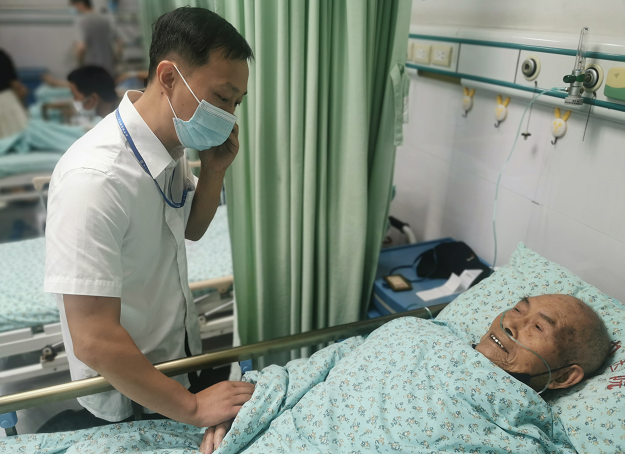 經(jīng)過(guò)急診科醫(yī)護(hù)人員的緊急救治,老人逐漸恢復(fù)了意識(shí)。朱正威耐心詢問(wèn)老人,得知老人姓周,垷坦人。朱正威幫周大爺聯(lián)系了家屬,離老人最近的三兒子在義烏工作,聽(tīng)聞此事,正由義烏回蘭的路上。已經(jīng)恢復(fù)清醒的老人驚魂未定,拉著朱正威的手久久不肯放開(kāi)。朱正威也一直拉著老人的手耐心安撫寬慰他。在這握著手溫情寬慰的五十分鐘里,老人逐漸放寬了心。隨后,朱正威又細(xì)心陪周大爺做完各式檢查。