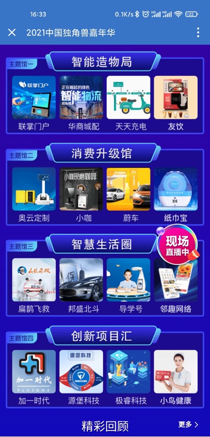 于此同時,由中國商業(yè)聯(lián)合會、中國產(chǎn)業(yè)發(fā)展促進會、胡潤百富、天九共享集團共同主辦的“2021中國獨角獸嘉年華”也于上周在線上正式開幕。四大直播主題館——智能造物局+消費升級館+智慧生活圈+創(chuàng)新項目匯已從9日起陸續(xù)登場。而“2021中國瞪羚企業(yè)·未來獨角獸評選活動”首批優(yōu)秀企業(yè)巡禮路演也正是通過四大主題直播館中的“創(chuàng)新項目匯”展示給全國企業(yè)家。