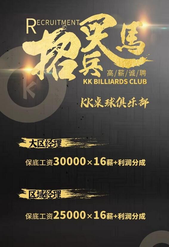 KK桌球以硬核實力抵御住了激烈的市場競爭,當(dāng)其他俱樂部因為經(jīng)營狀況不佳而紛紛銷聲匿跡時,KK臺球卻在乘勝追擊,不斷爆出強(qiáng)音。俱樂部的最新招聘計劃顯示,招募人員全面涵蓋店面管理、教練等職位,且給出的待遇極其優(yōu)厚,在官方發(fā)布的招聘海報中,可以感受到KK桌球十足的誠意。