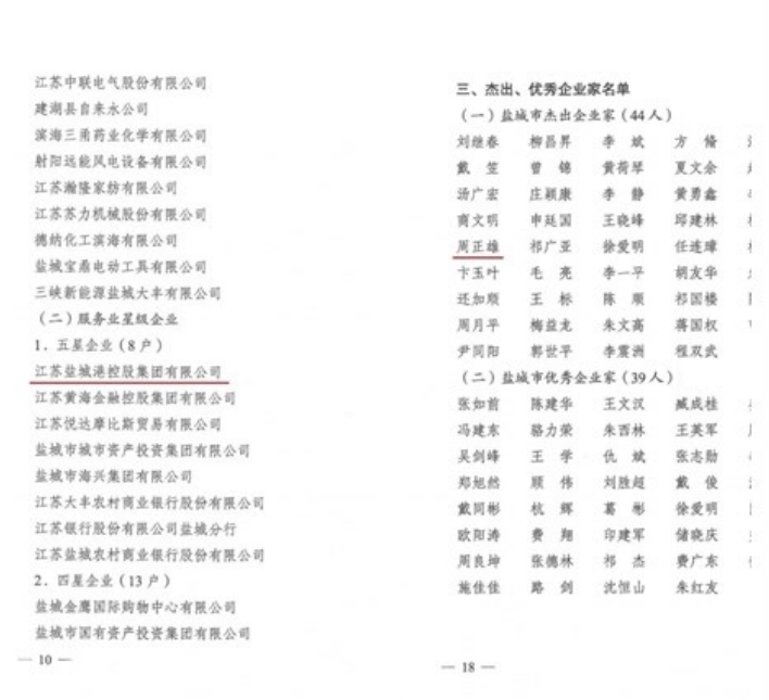 江蘇鹽城港控股集團榮獲“服務業(yè)五星企業(yè)”,集團黨委書記、董事長、總經(jīng)理周正雄榮獲“鹽城市杰出企業(yè)家”榮譽稱號!