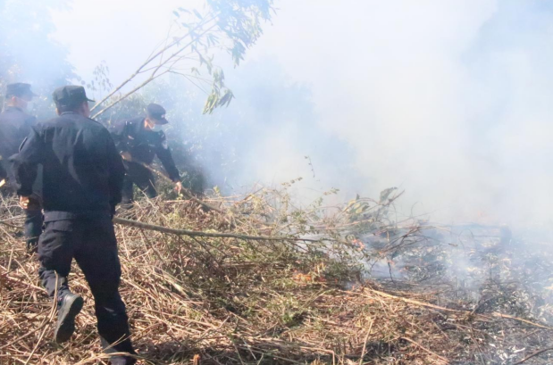 民警到達現(xiàn)場后了解得知,該起火情系小壩子鎮(zhèn)一村民蘭某欲種植生姜,對山上的枯草進行焚燒所致,由于初春天氣干燥,周圍干枯樹木雜草較多,加上風(fēng)助火勢,大火迅速向周圍蔓延失控。經(jīng)過民警及當事人一個小時的奮力撲救,大火被成功撲滅,為避免死灰復(fù)燃,民警對現(xiàn)場進行了仔細勘察,將周圍可燃物迅速清理隔離,并將灰燼深度掩埋,確認無復(fù)燃隱患后才撤離。民警不顧安危、果斷處置、滅火救險的行為,得到了當事人及小壩子鎮(zhèn)半坡村村民的高度贊揚。當事人蘭某聲稱:“真的太感謝派出所民警了,要不是邊境派出所民警及時趕到撲滅大火,后果將不堪設(shè)想。”