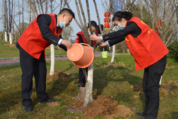 植樹現(xiàn)場,到處都是青年志愿者忙碌的身影,有的挖坑拋樹、有的鏟土培實、有的提桶澆水,各個環(huán)節(jié)配合默契,大家勁往一處使,汗往一處流,充分發(fā)揚了團結(jié)、互助、友愛的精神。經(jīng)過將近兩個小時的辛勤勞動,一顆顆新栽的櫻花樹、月季花樹重新“安家落戶”,為社區(qū)公園增添了一片生機,營造了綠色環(huán)境。看著公園里自己種植的樹木,大家臉上洋溢著幸福的笑容,最后大家繼續(xù)給其他花卉綠植松土、澆水。
