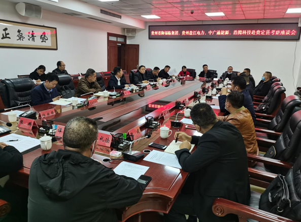 3月末,應(yīng)黔南州貴定縣人民政府邀約,貴州省御福臨集團組織企業(yè)考察團貴州盤江電力投資有限公司、貴州中廣通能源有限公司、貴州浩騰科技有限公司企業(yè)代表十余人,前往黔南州貴定縣參加“風能、水能、光伏+現(xiàn)代高效農(nóng)牧業(yè)+智慧農(nóng)業(yè)+零碳城市+鄉(xiāng)村生態(tài)旅游+數(shù)字鄉(xiāng)村”項目投資建設(shè)考察座談交流,縣委書記班代榮出席并主持會議。