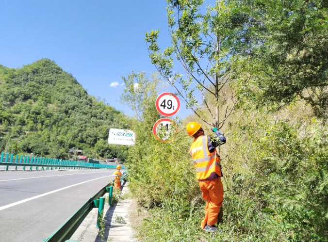 為改善高速公路安全通行條件,消除安全隱患,針對夏季樹木長勢過盛遮擋高速公路交通標(biāo)志牌情況,隴南高速公路養(yǎng)護(hù)所組織養(yǎng)護(hù)人員對轄養(yǎng)高速公路內(nèi)遮擋交通標(biāo)志的樹枝全面進(jìn)行修剪清理。