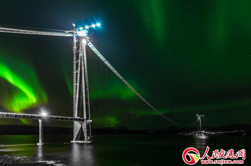 2017年4月,四川路橋員工克服了北極圈地區(qū)冬季極端惡劣的風雪天氣,按計劃完成了全橋92根主纜索股的架設,創(chuàng)造了歐洲橋梁工程的“中國速度”。截至10月6日,在僅有的17天允許海上作業(yè)時間里,四川路橋建設者圓滿完成了全部30段鋼箱梁的吊裝任務。