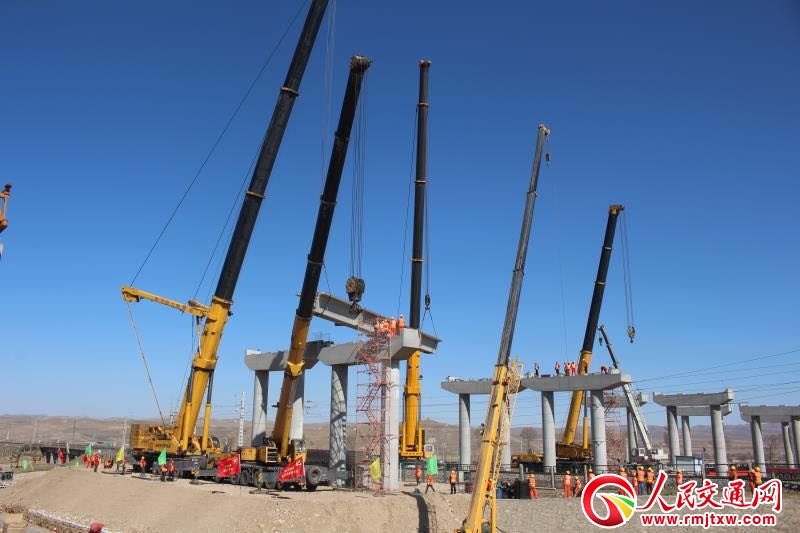 長城梁特大橋跨寧岢鐵路梁板架設現(xiàn)場