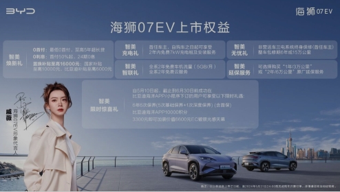 即日起,訂購(gòu)海獅07EV可享0首付0利息、置換補(bǔ)貼至高16000元、全系2年免費(fèi)車(chē)機(jī)流量(5GB/月)等多重豐厚福利。截至6月30日前,成功在比亞迪海洋APP/小程序下訂的用戶,可享受6年6次保養(yǎng)、比亞迪海洋APP10000積分等限時(shí)驚喜禮!