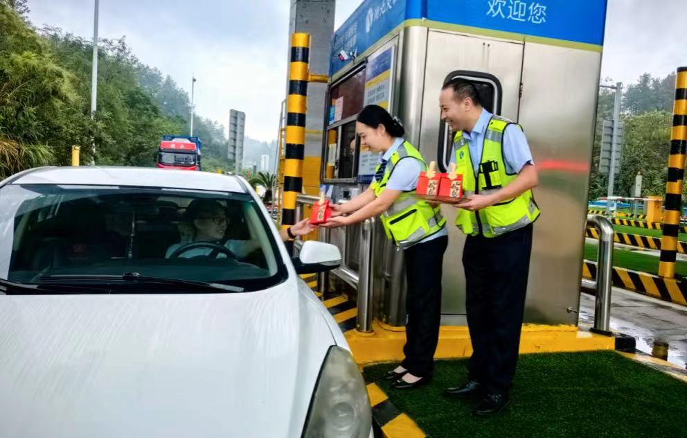 “師傅,中秋節(jié)快樂,您旅途辛苦了,嘗嘗我們手工制作的月餅吧。”志愿者在收費(fèi)站外廣場,將新鮮出爐的月餅分享給司乘人員,并送上真誠的中秋祝福,接過月餅的司乘人員難掩喜悅說到:“沒想到出門在外還能收到月餅,也提前祝你們節(jié)日快樂!”。簡短的一句相互祝福的話語,傳遞著誠摯又暖暖的情誼,看著司乘發(fā)自內(nèi)心的笑意,志愿者的心里也感受到了一股濃濃的“甜意”。