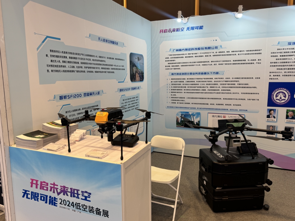 本次2024低空裝備展,南方測(cè)繪攜帶兩款無(wú)人機(jī)參展。其中,智航SF1200是南方測(cè)繪自主研發(fā)的四旋翼無(wú)人機(jī)。具備強(qiáng)大的續(xù)航、避障、圖傳、仿地飛行功能,搭配自主研發(fā)飛控算法和地面站軟件,飛機(jī)激光一體化控制,一鍵起飛,讓測(cè)繪外業(yè)告別電腦。