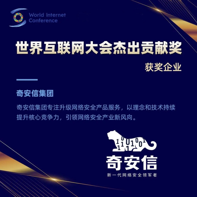 11月20日,在2024年世界互聯(lián)網(wǎng)大會(huì)烏鎮(zhèn)峰會(huì)開(kāi)幕式上,奇安信集團(tuán)憑借其在網(wǎng)絡(luò)安全領(lǐng)域的卓越成就與無(wú)限潛力,榮獲“世界互聯(lián)網(wǎng)大會(huì)杰出貢獻(xiàn)獎(jiǎng)”。