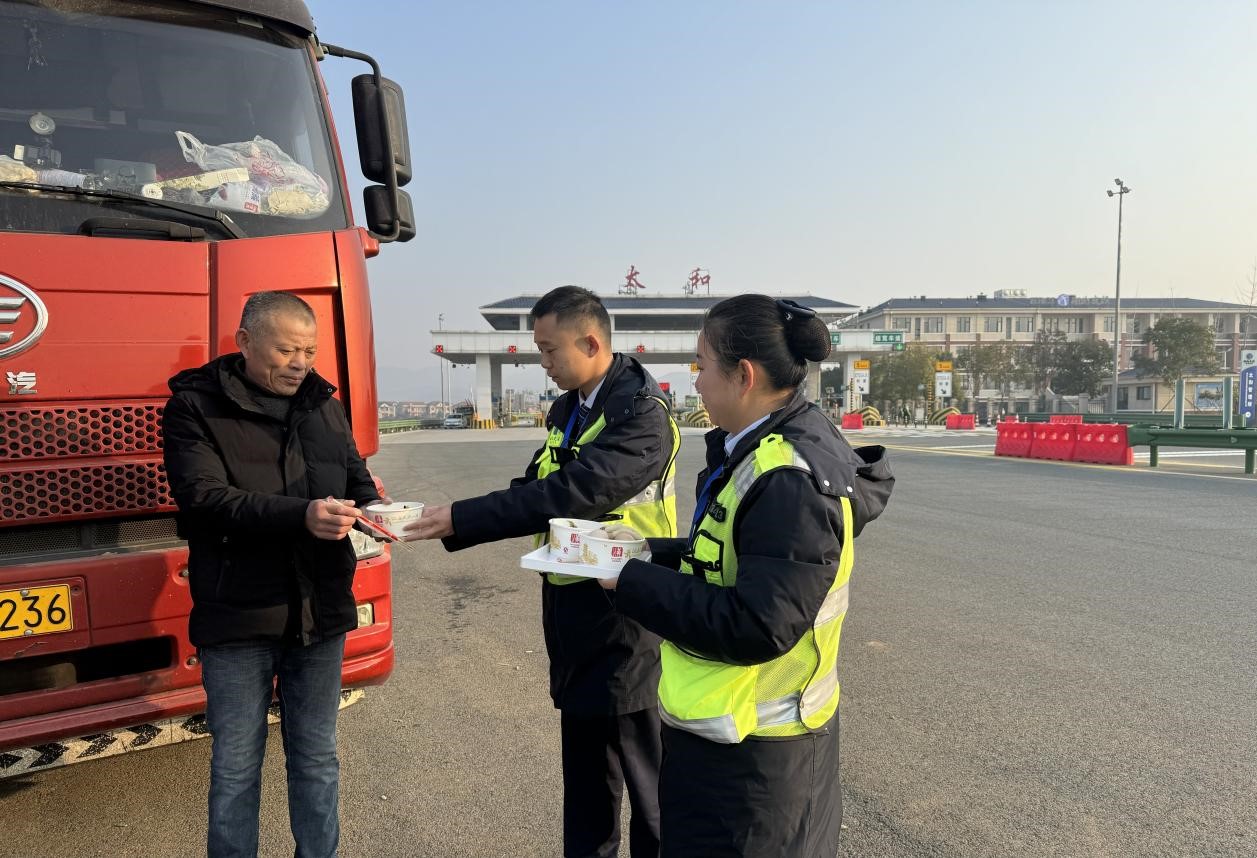 2024年12月25日一輛貨車停在太和管理所外廣場,只見司機(jī)在車輛附近來回踱步,焦急萬分。當(dāng)班班長發(fā)現(xiàn)了這一情況,迅速上前詢問情況,是否需要幫助。司機(jī)說他們已經(jīng)已聯(lián)系維修人員,但是要等很長時間才能到來,司機(jī)也別無他法,只能無奈的等著,他為了著急接貨,凌晨不到五點就出發(fā)了,到現(xiàn)在沒有吃一點東西,得知情況后收費班長在車輛后方設(shè)置好警示標(biāo)志,確,F(xiàn)場安全,并耐心地安撫司機(jī)的情緒。在等待救援的過程中,收費班長還為司機(jī)提供了暖心早餐和熱水,并告訴在司乘人員停留階段有任何有需求可聯(lián)系我們管理所工作人員,并表示管理所24小時都有職工值班。