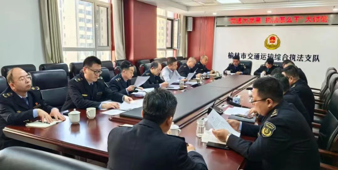 為認(rèn)真貫徹落實關(guān)于交通強國建設(shè)的重要指示精神,深化交通運輸綜合執(zhí)法改革,進(jìn)一步推動交通運輸綜合執(zhí)法標(biāo)準(zhǔn)化、規(guī)范化建設(shè),提升交通運輸綜合執(zhí)法水平。12月24日上午,榆林市交通運輸綜合執(zhí)法支隊開展“交通大發(fā)展 執(zhí)法怎么干”大討論活動,支隊副科級以上人員和新提拔科級干部參加本次活動,各縣市區(qū)交通運輸綜合執(zhí)法大隊同步開展研討活動。