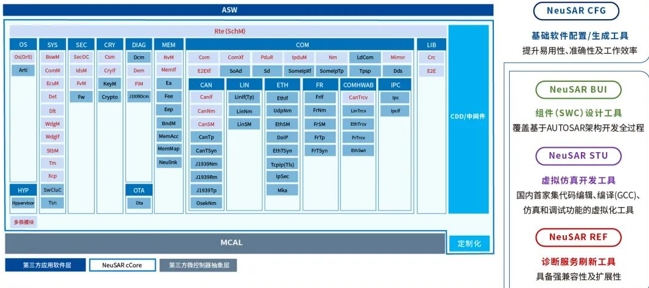 目前,NeuSAR OS已適配超過70款主流車規(guī)級(jí)芯片,具備廣泛的兼容性與靈活的部署能力。在本次與時(shí)代智能的合作項(xiàng)目及其所服務(wù)的車型中,NeuSAR OS成功適配NXP S32G、英飛凌TC3xx、芯馳E3等芯片平臺(tái),在底盤控制等關(guān)鍵場(chǎng)景中實(shí)現(xiàn)高效落地,覆蓋國內(nèi)主流車企量產(chǎn)與預(yù)研等多個(gè)階段。