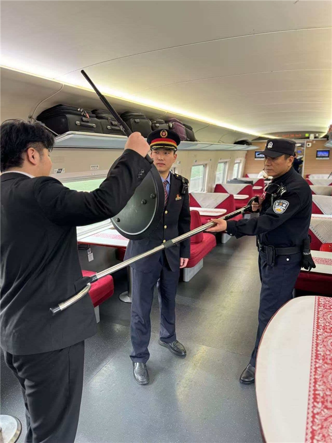 在第十個全國反恐怖公眾宣傳日來臨之際,為深入貫徹《中華人民共和國反恐怖主義法》,筑牢鐵路運輸安全防線,鄭州客運段高鐵一隊以“全民反恐,共創(chuàng)平安”為主題,針對職工隊伍,車隊開展專題培訓與模擬演練,模擬突發(fā)情況下的人員疏散、嫌疑控制流程,直觀展現應急處置能力;并向職工系統解讀反恐法核心條款,重點培訓可疑人員識別、危險物品排查等崗位技能,明確乘務人員“第一道防線”職責。在值乘列車上,乘務人員與乘警組成宣傳小組,通過真實案例揭露恐怖主義危害,引導旅客樹立“反恐無小事,人人皆有責”的意識,提醒大家主動配合安檢、及時報告乘車途中身邊異常情況。
