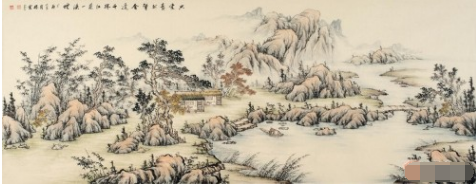 此幅山水畫的布局,恰恰就是“背山面水,山懷水抱”山顧盼有情,水曲折有致,典型的風(fēng)水格局。將浩蕩的天地之間氤氳之氣躍入畫卷,靈氣,福氣財(cái)氣相隨融通,豐澤綿綿,這樣的一幅山水畫掛于客廳讓您的事業(yè)蒸蒸日上。