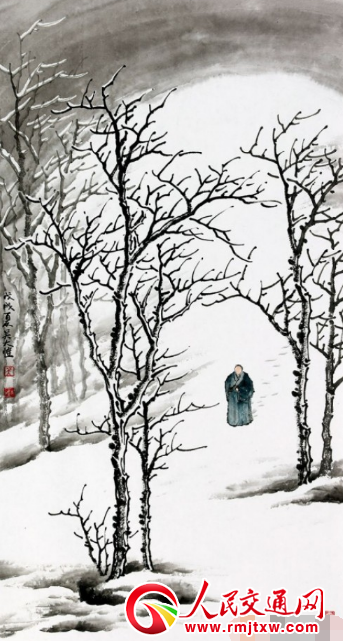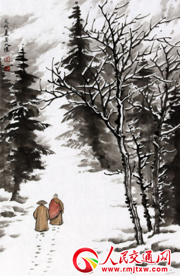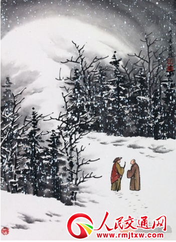 吳大愷潛心之作國(guó)畫(huà)《雪中參禪》來(lái)源:易從網(wǎng)