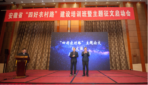 安徽省公路管理服務(wù)中心局長秦勤(左)、安徽省公路學(xué)會理事長羅寧(右)共同啟動“四好農(nóng)村路”主題征文活動