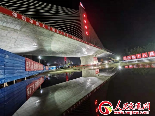 京津冀交通一體化重點(diǎn)項(xiàng)目的保定樂(lè)凱大街南延工程是保定規(guī)劃的加強(qiáng)“一城三星一淀”四條道路連接線之一,為最大限度減少對(duì)京廣鐵路和城市交通的影響,主橋采用了國(guó)際領(lǐng)先的子母塔雙轉(zhuǎn)體施工技術(shù)。該橋建成運(yùn)營(yíng)后,將從根本上完善了保定市城區(qū)交通網(wǎng)絡(luò),為京津冀一體化發(fā)展發(fā)揮更大的協(xié)同效應(yīng),同時(shí)也為我國(guó)特殊環(huán)境下采用新型、大跨度橋梁的科研設(shè)計(jì)和施工積累了豐富的經(jīng)驗(yàn)。