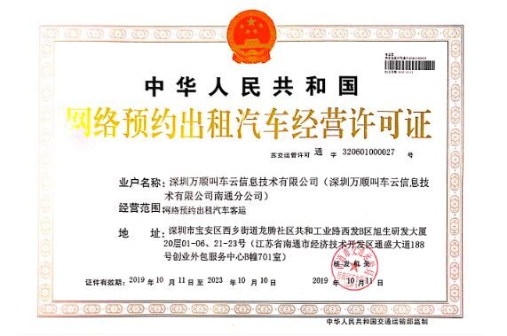 沈陽市網(wǎng)約車經(jīng)營許可證