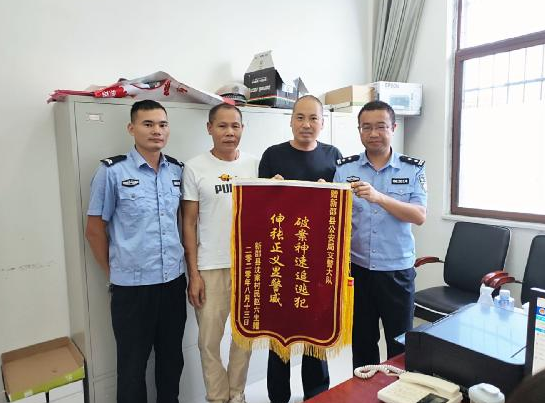 “感謝新邵交警的敬業(yè)付出,迅速破獲案子,維護了我們受害人的利益”。8月13日上午,傷者家屬趙先生頂著烈日趕到新邵交警大隊122處警中隊,將一面繡有“破案神速追逃犯,伸張正義顯警威”的錦旗送到中隊長楊黎洪與民警李呈祥等手中,表達交警盡職盡責、不辭辛苦,快速偵破交通事故肇事逃逸案的感激之情。