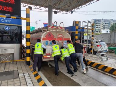 上午正臨早高峰,一輛中石化油罐車在運(yùn)輸途中,發(fā)生故障停在收費(fèi)車道出口。司機(jī)多次打火仍然無(wú)法啟動(dòng)車輛,油罐車堵在道口中間極易發(fā)生二次碰撞危險(xiǎn)。萬(wàn)急之下收費(fèi)站快速反應(yīng),在車道外放置安全桶,提醒來(lái)往車輛,疏導(dǎo)現(xiàn)場(chǎng)交通,迅速召集在場(chǎng)人員,收費(fèi)站女同志“巾幗不讓須眉”連同男同志一起將油罐車推到站口安全地帶,并幫助司機(jī)聯(lián)系修車人員,幫助司機(jī)排險(xiǎn)解困。