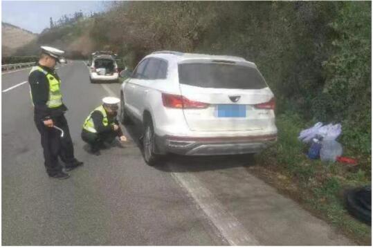 近日,保山市公安局交警支隊(duì)保龍一大隊(duì)民警巡邏至保龍高速公路龍陵至保山方向大官市路段時(shí),發(fā)現(xiàn)一輛號(hào)牌為云A牌照的小型越野車停在應(yīng)急車道內(nèi),車旁還有一人正焦急地走來走去。